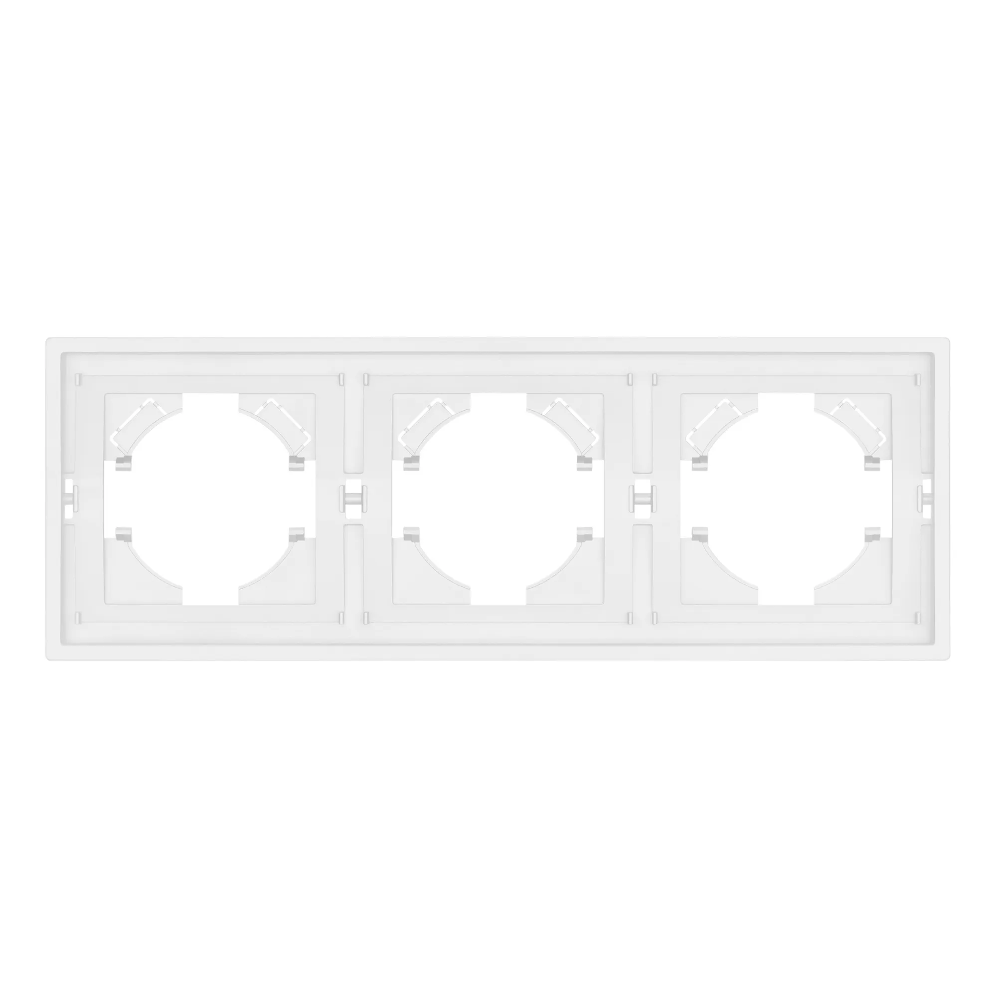Рамка пластиковая на 3 поста, под встраиваемый механизм. Цвет - белый. Уровень герметичности IP20. Ориентация монтажа горизонтальная.