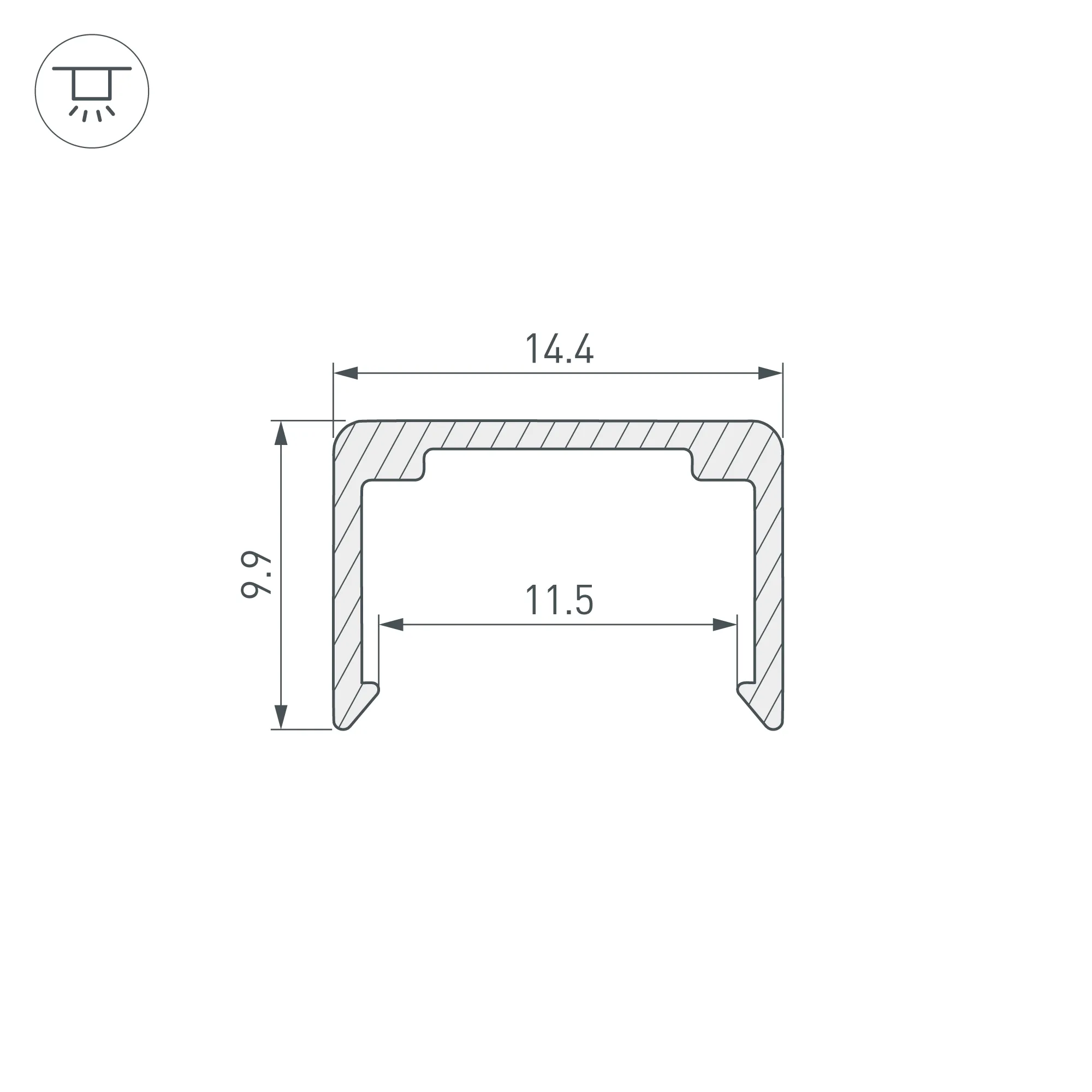Профиль из анодированного алюминия для силиконового профиля WPH-FLEX-1212. Габаритные размеры (L×W×H): 1000х14,4х9,9 мм. Цена за 1 метр.